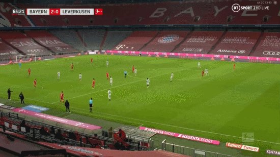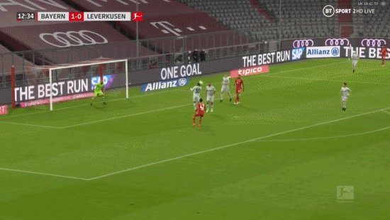 66'拜仁后场长传,舒波-莫廷单刀破门,但因在接球时处在越位位置被吹